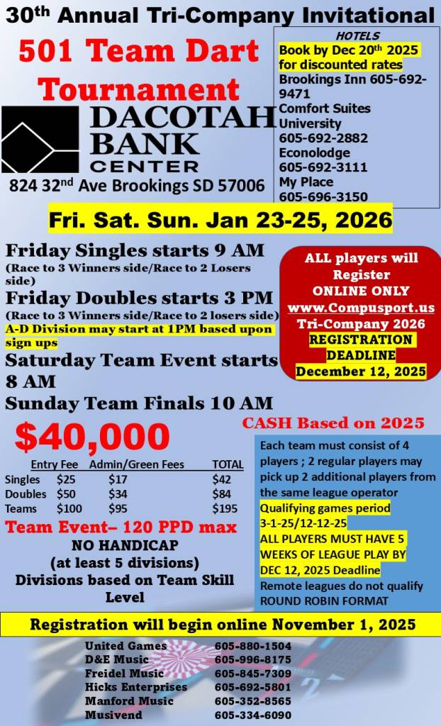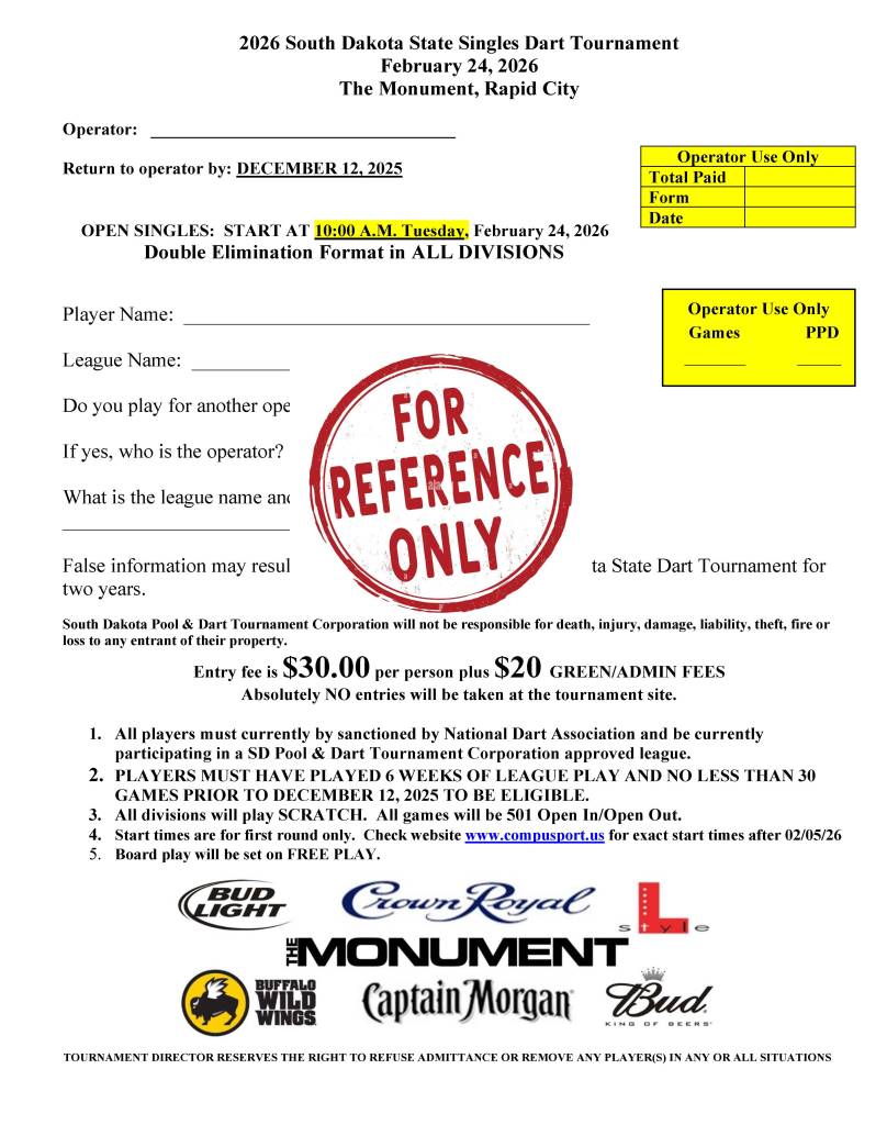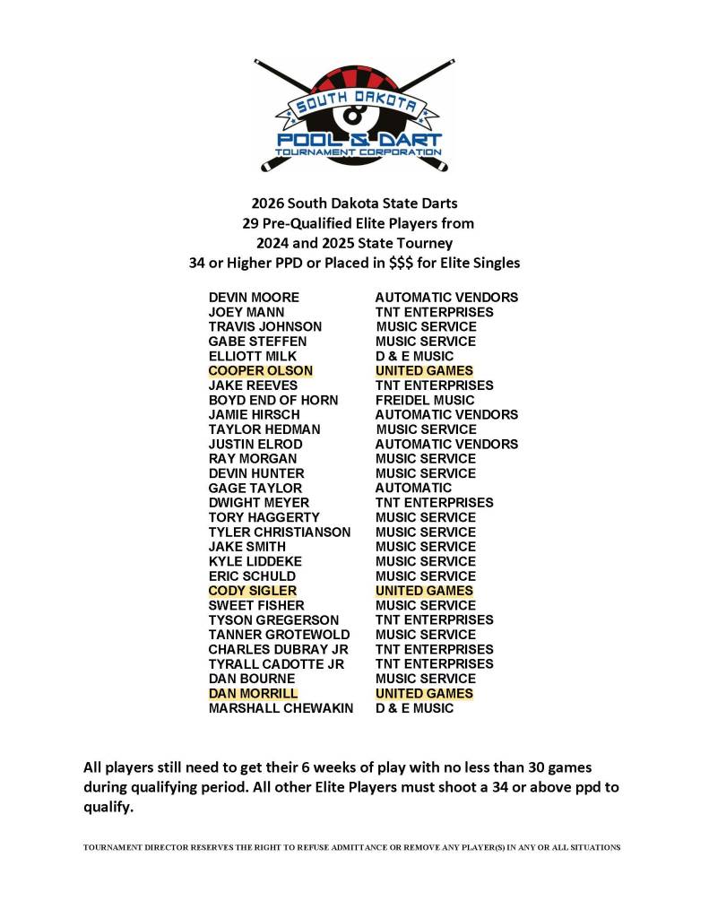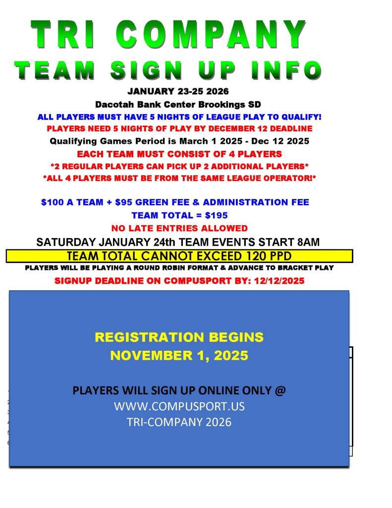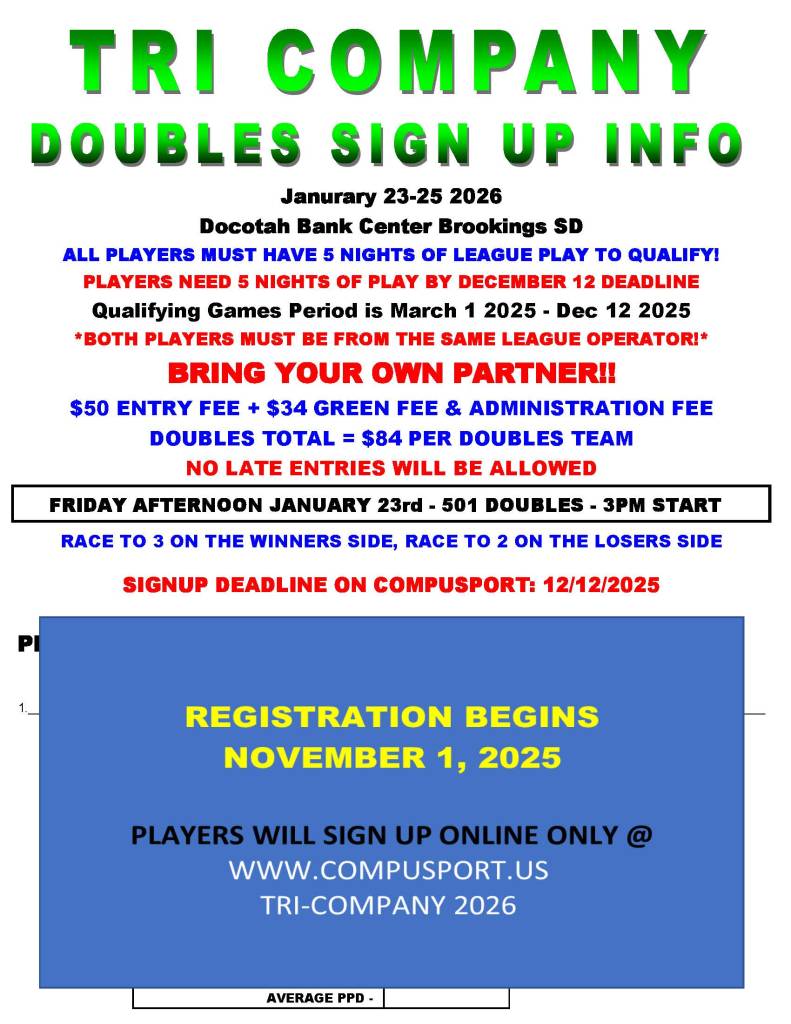 PLAYERS WILL REGISTER AND PAY FOR EVENTS WITH RACHEL AT THE OFFICE BY MONDAY MARCH 2 2026. QUALIFYING GAMES PERIOD IS MARCH 1 2025 TO MARCH 6 2026