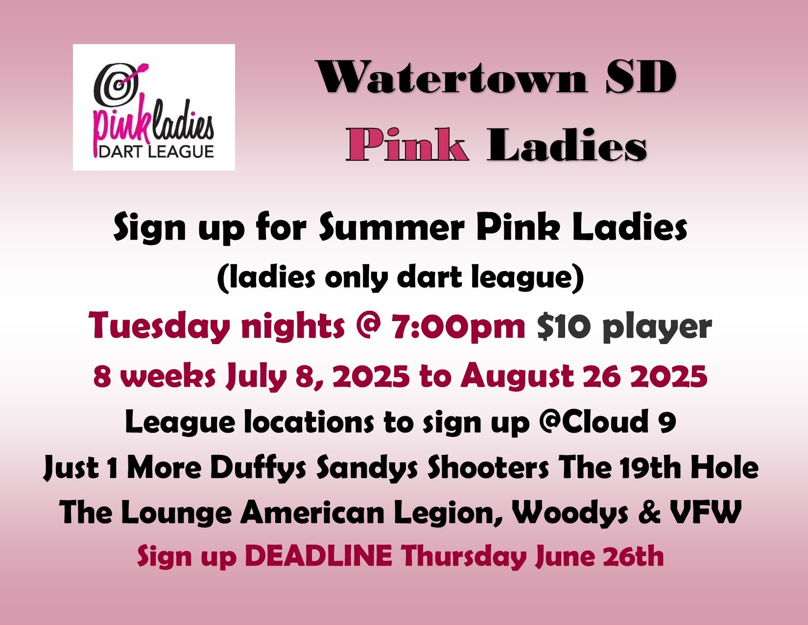 » » SIGN UP DEADLINE Watertown Pink 501 Summer Doubles League