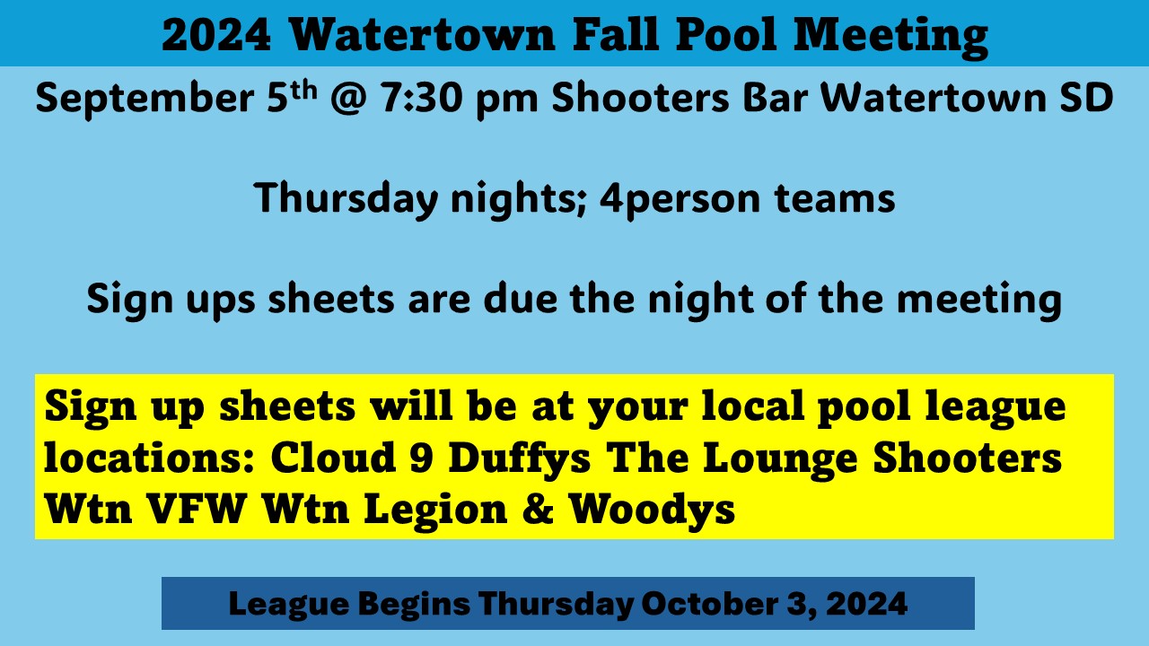 » » Watertown Thursday Fall Pool League Meeting